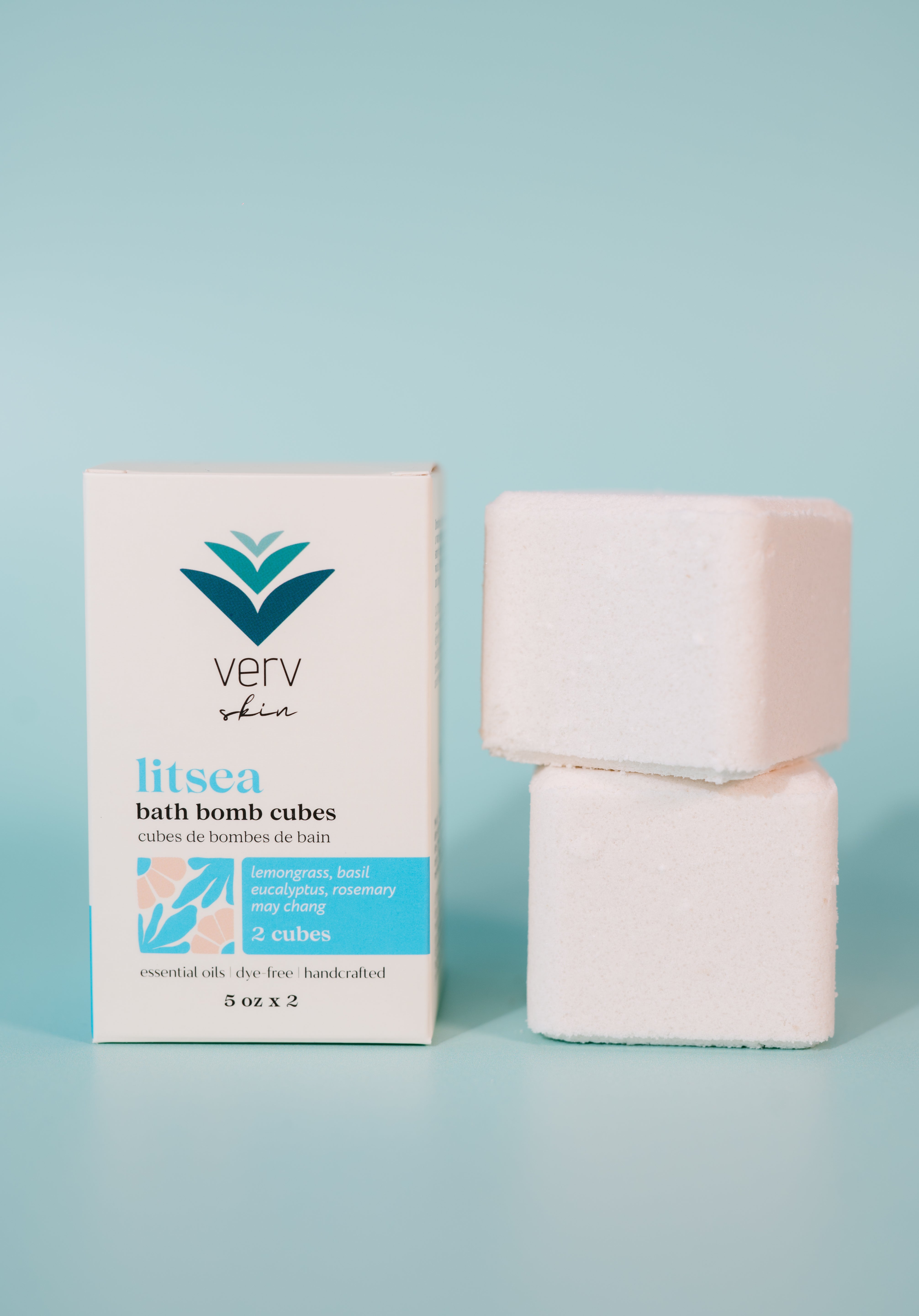 Litsea Bath Bomb Cubes | Punchy Lemongrass + Eucalyptus