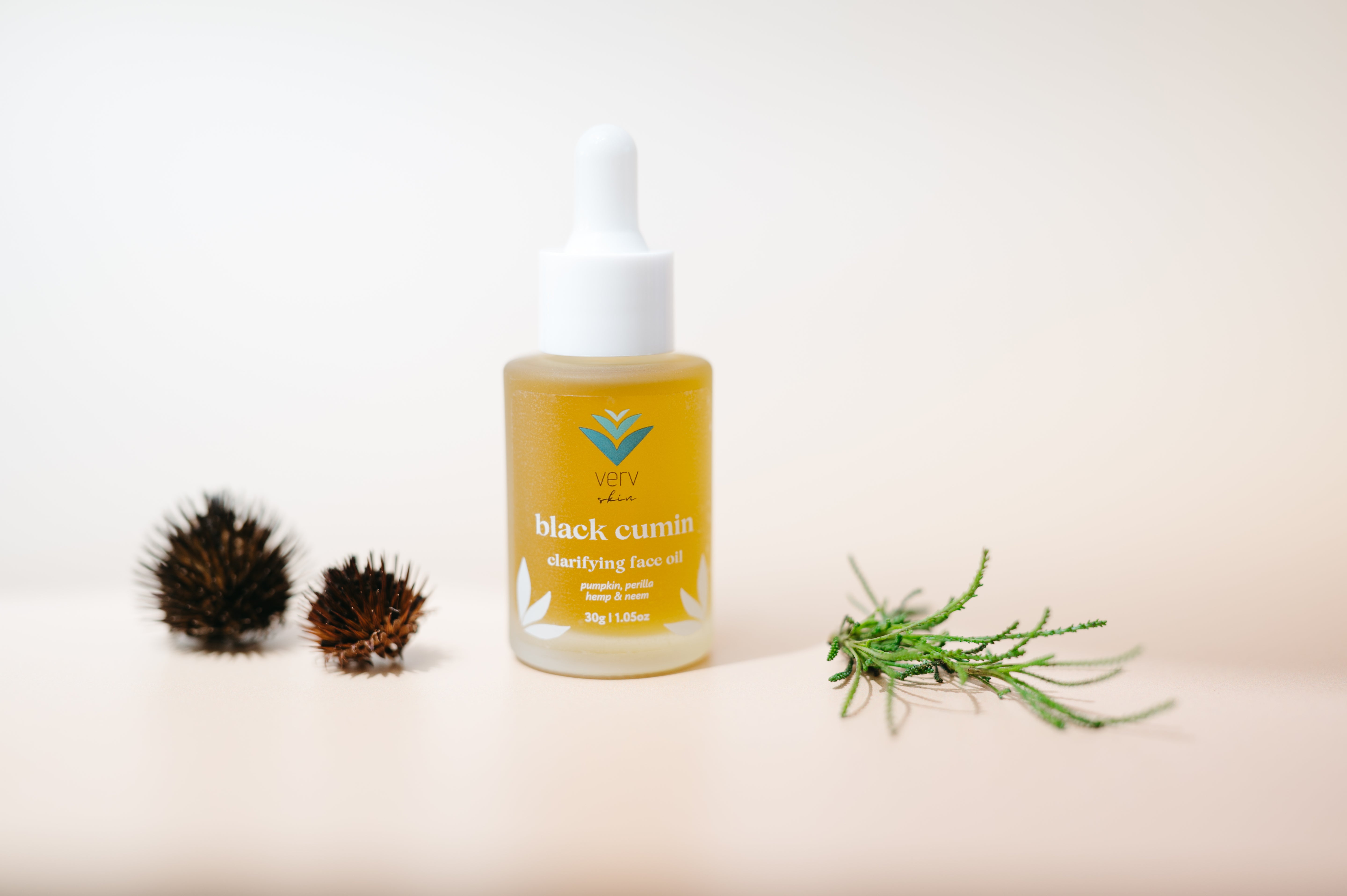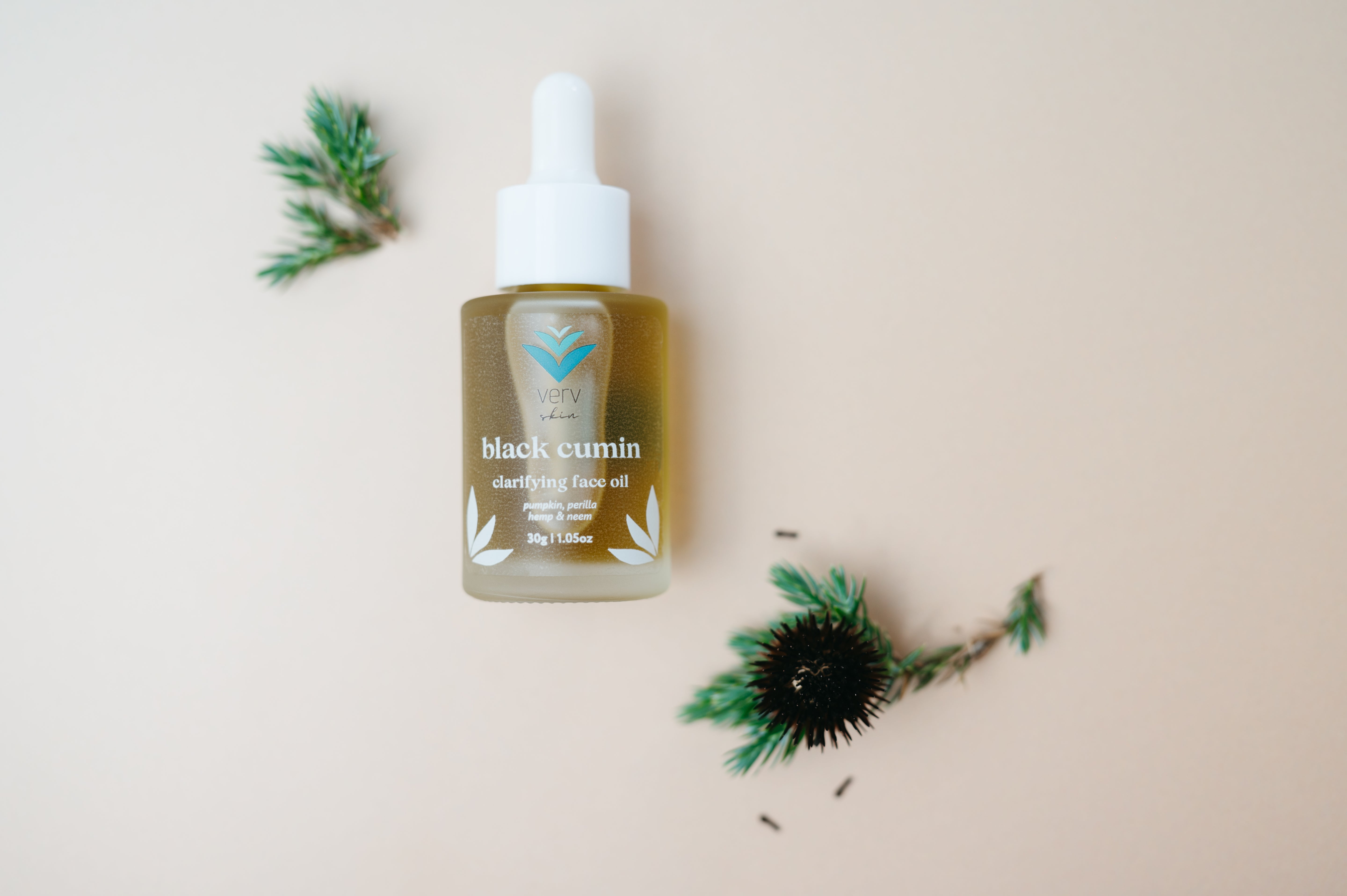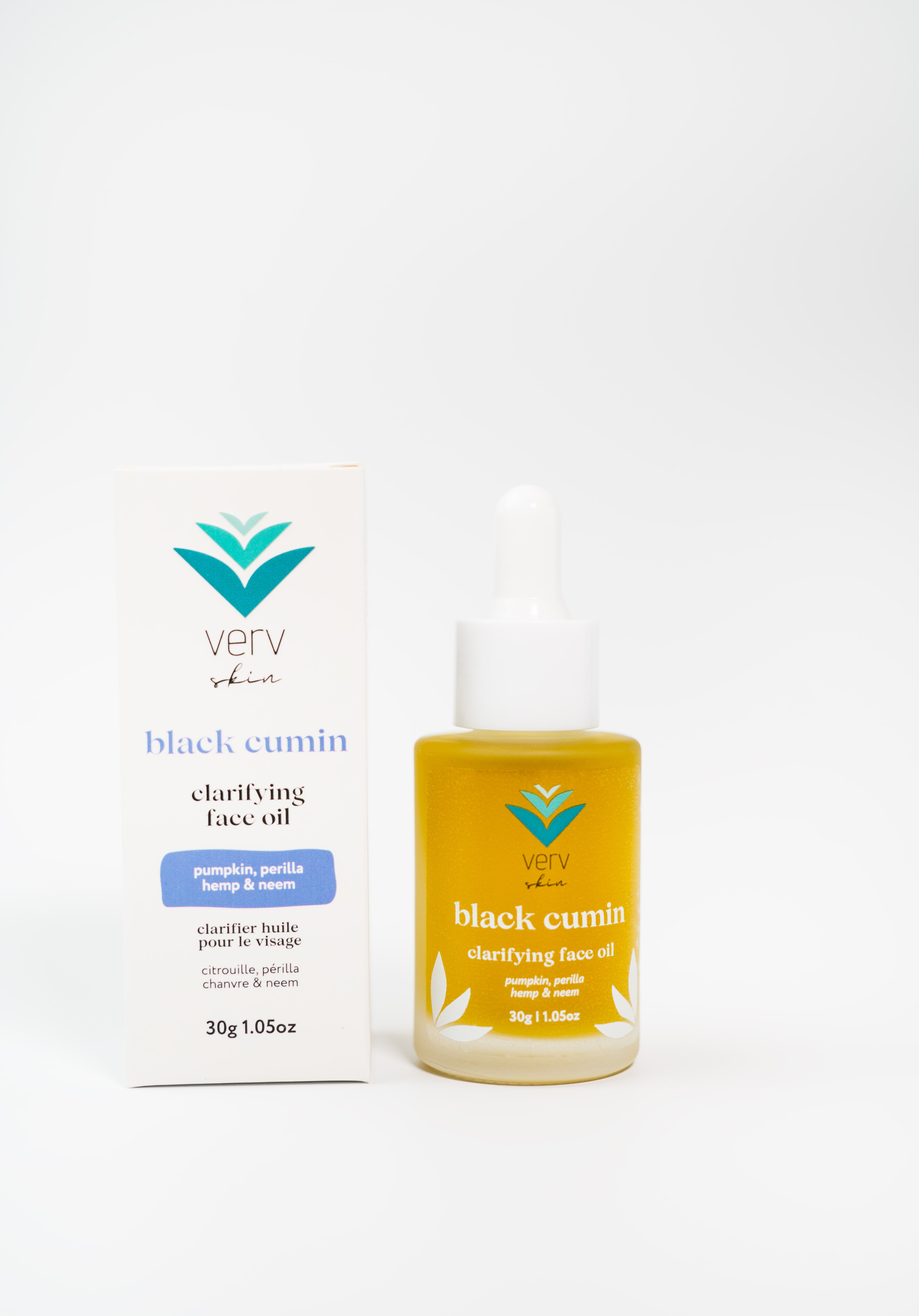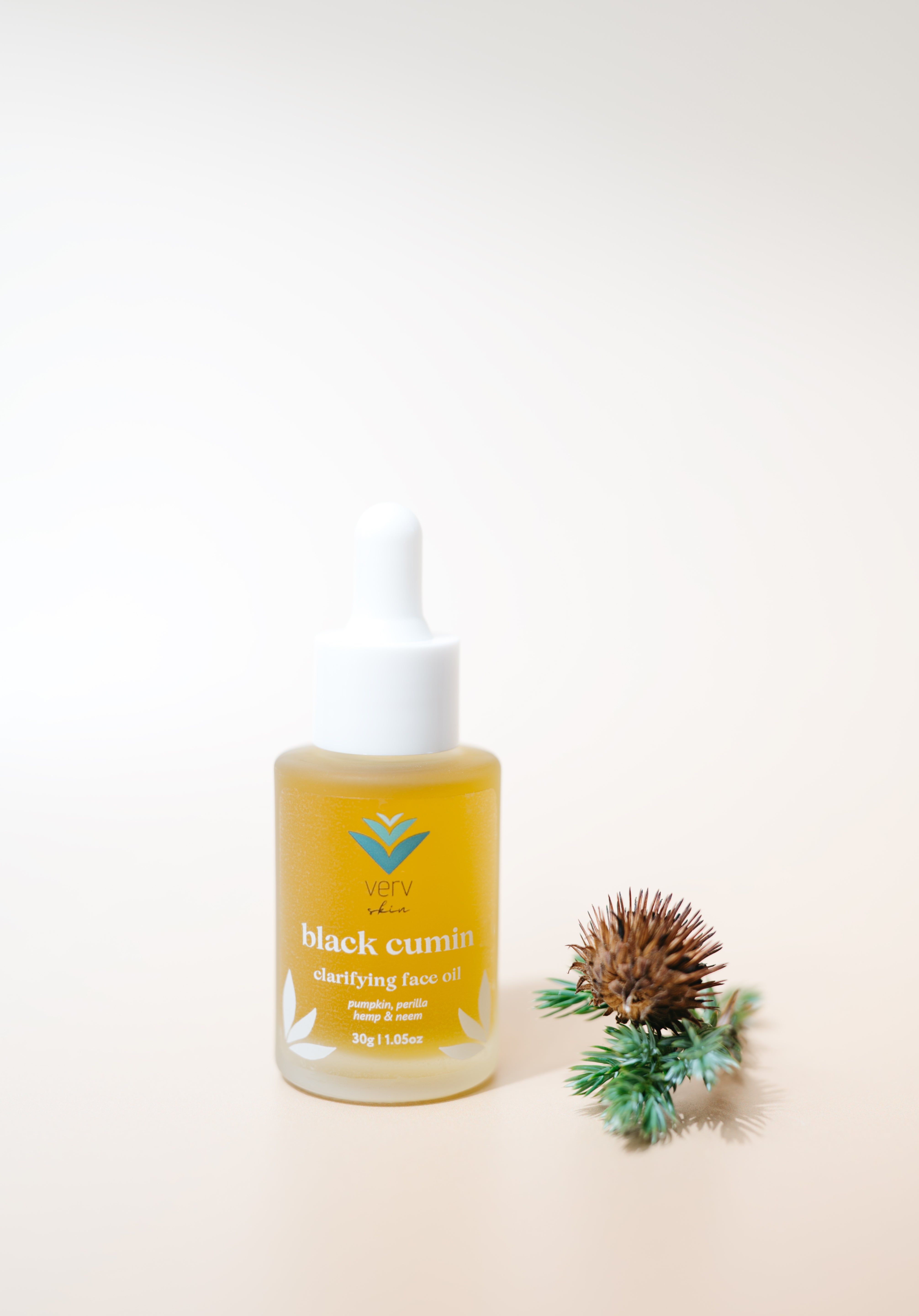 Experience the clarifying power of our Black Cumin Clarifying Face Oil, designed to help combat acne-causing bacteria, reduce redness, and promote clearer, healthier skin.
