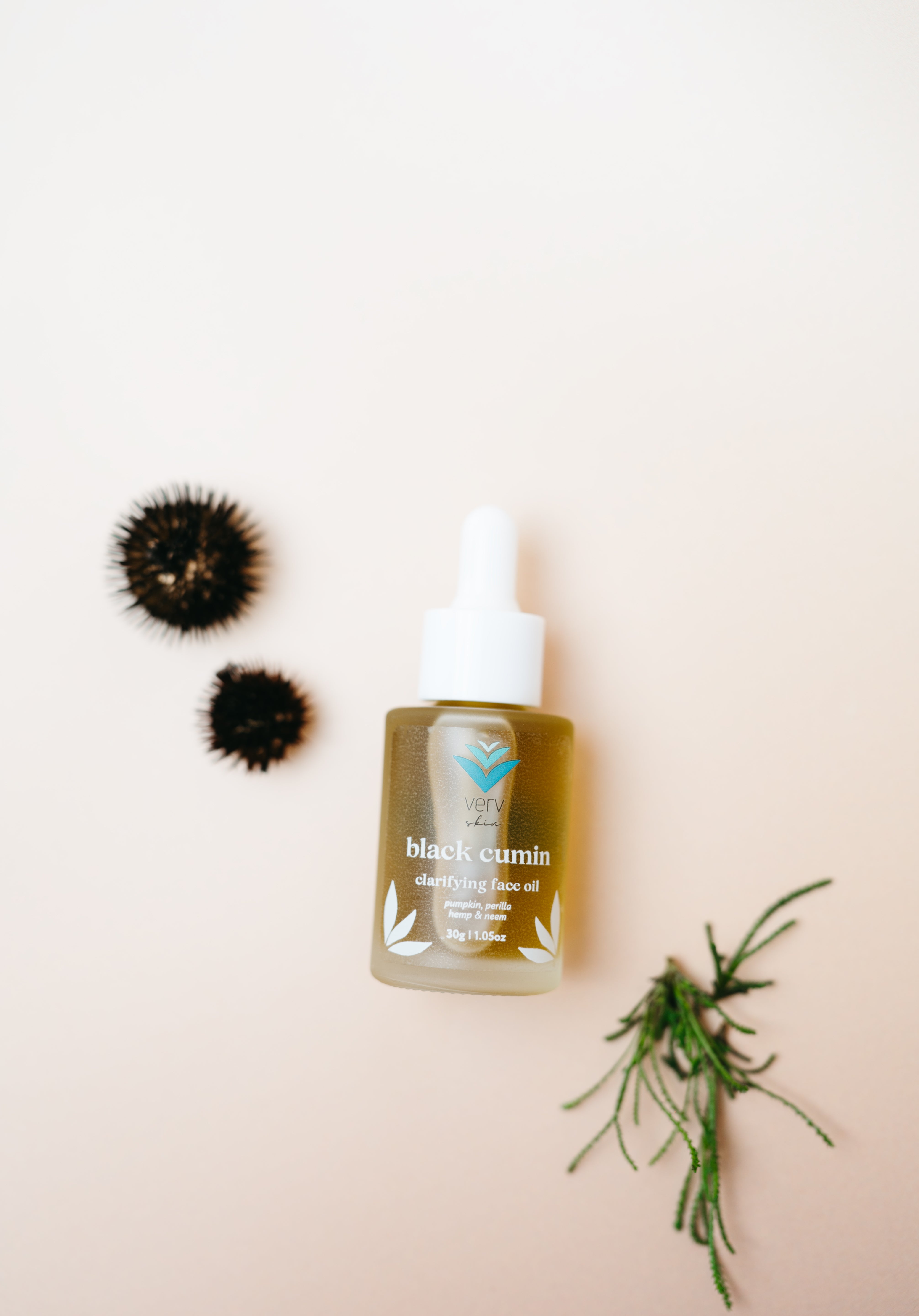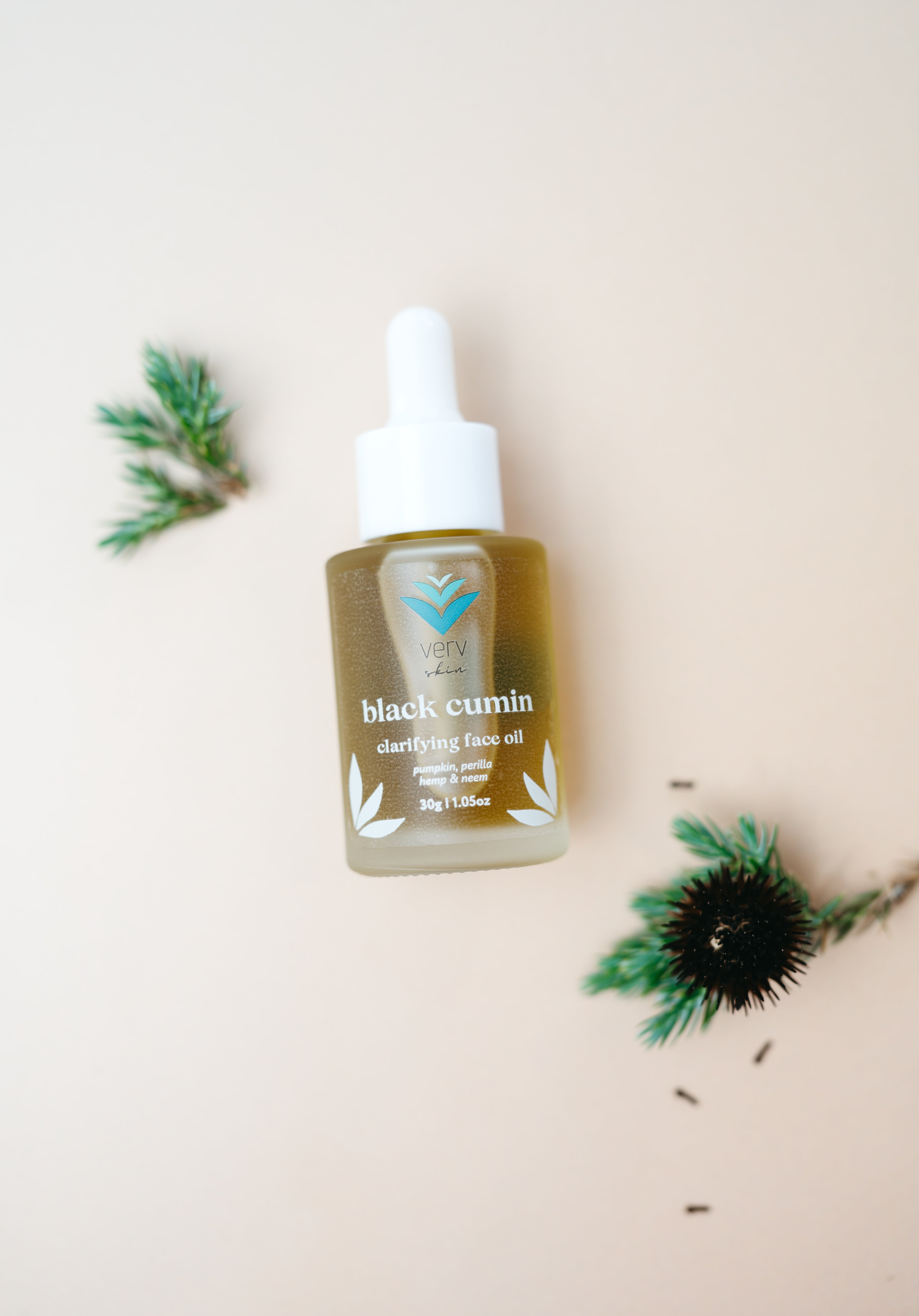 Infused with powerful oils like black cumin, pumpkin seed, and tamanu, this clarifying face oil provides deep nourishment while actively working to reduce inflammation and prevent future breakouts. The naturally grounding aromas of rosemary and thyme offer an uplifting, therapeutic experience with every use.