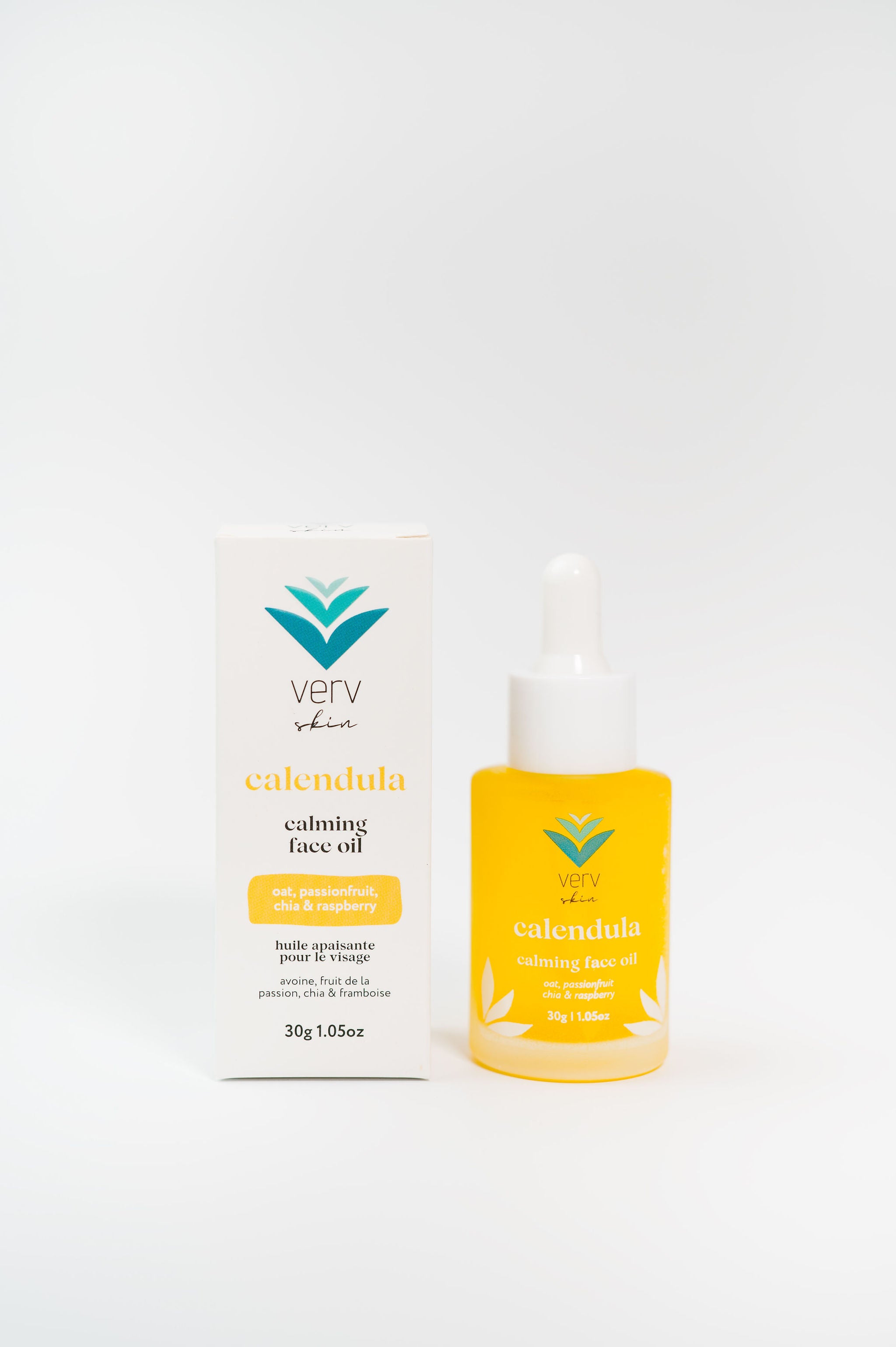 Infused with organic calendula flowers and enriched with a blend of passionfruit, black currant, and oat oils, this face oil provides rich hydration to soften and protect the skin. A hint of natural, fresh fruitiness from passionfruit seed oil enhances the experience, making each application a moment of calming relief.