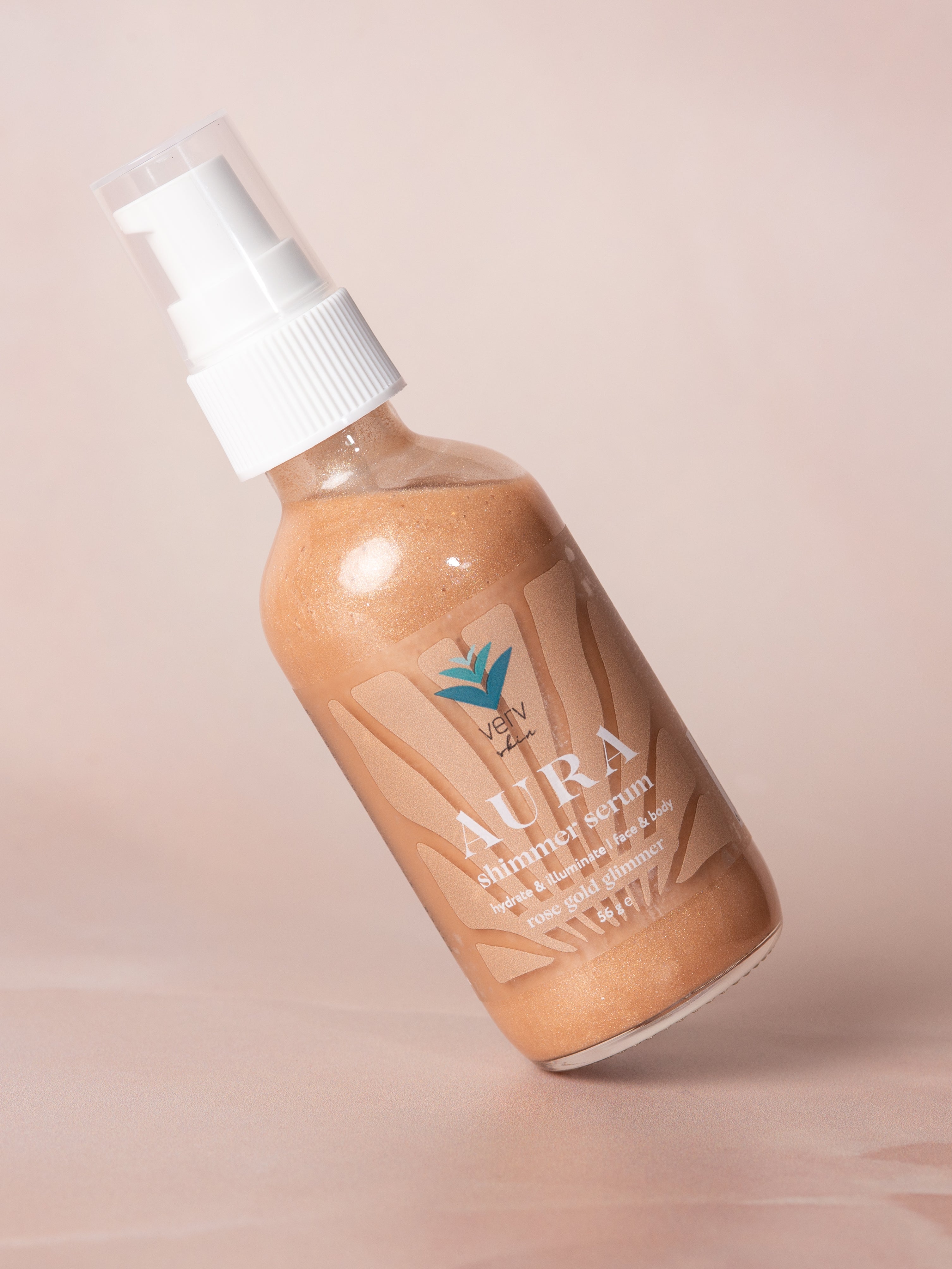 Glow from every angle—Rose Gold Glimmer Shimmer Serum is a dewy, lightweight serum that hydrates, nourishes, and leaves skin softly luminous with a whisper of warm rosy shimmer.